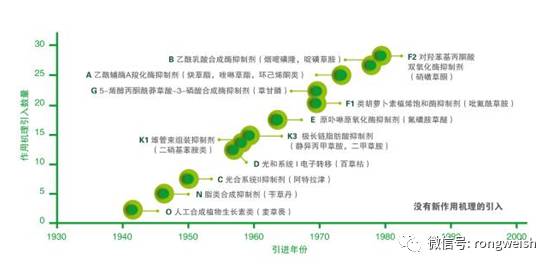 在20世紀70到80年代,引進了很多新的作用機理除草劑以防除雜草。但是,雖然研發、投資從未停止,但近20年來沒有商業化新的作用機理除草劑。在可預見的未來,單獨依賴全新作用機理除草劑解決雜草抗性的方法顯得越來越困難。